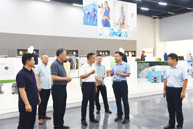 調研組一行深入公司運營核心,實地考察了智云中心、檢測中心、綜合辦公區、服裝面料公司、花布公司、家紡公司、創意中心、研究院、花布車間等區域,詳細了解了公司當前生產經營實況、核心技術優勢、市場戰略布局及未來發展規劃路徑。